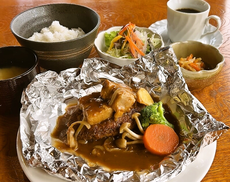 期間限定メニュー「豚バラとハンバーグの 熱々デミグラス・ホイル焼き」(2026.1.23~) 未分類 2026.01.22 ハンバーグと柔らかな豚バラ肉をホイルに包み、オーブンでじっくり焼き上げました。デミグラスソースで仕上げた熱々のホイル焼きメニュー! 数量限定です。※熱々調理のため、提供まで少しお時間をいただきます。 ごはん・汁物・小鉢・サラダ付き 1,480円(税込)(※ランチタイムはワンドリンク付き) 皆様のご来店をお待ちしております。