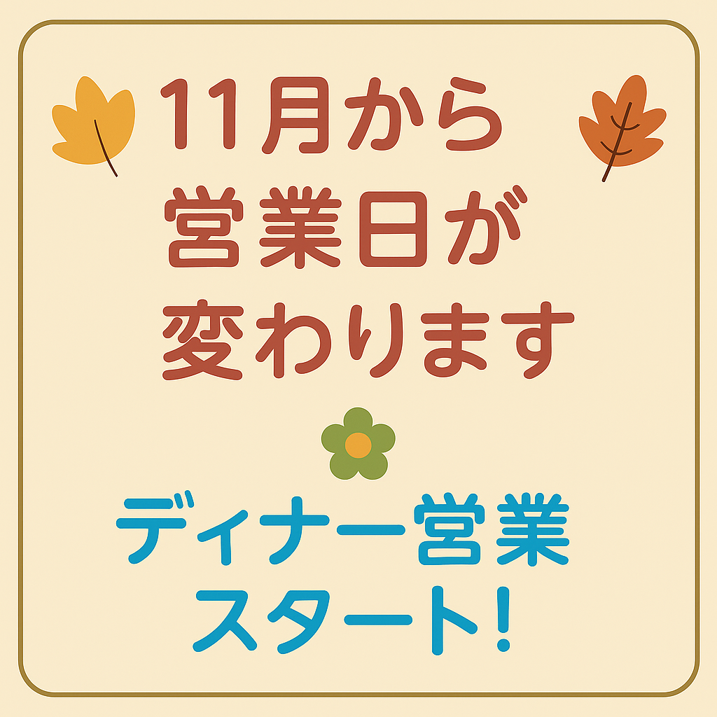 このたび、2025年11月より営業日を一部変更させていただくことになりました。